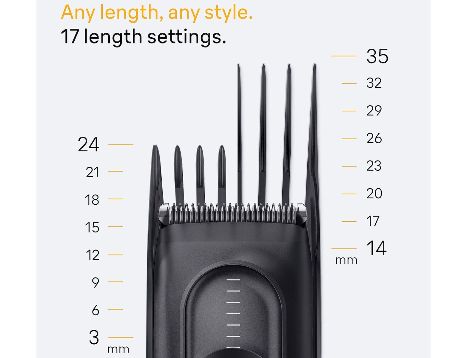 -Χτένα για κοντά μαλλιά (3-24 mm) και χτένα για μακριά μαλλιά (14-35 mm).