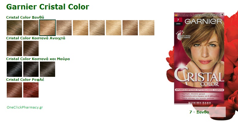 Η βαφή Garnier Cristal Color περιέχει χρωστικά υψηλής αντοχής που εισχωρούν στην καρδιά της τρίχας και χαρίζουν λαμπερό, πλούσιο χρώμα, πολύ μεγάλης διάρκειας.