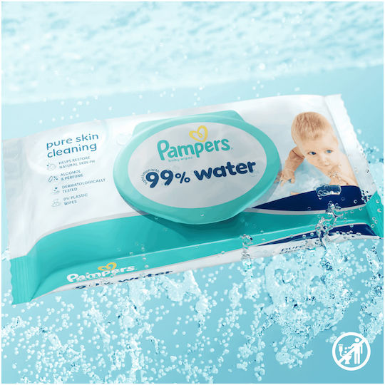 Τα μωρομάντηλα Pampers 99% νερό προσφέρουν έναν απαλό καθαρισμό του δέρματος και βοηθούν στην προστασία του ευαίσθητου δέρματος του μωρού χάρη στη ειδική τους σύνθεση. Η σύνθεση συμβάλλει στην αποκατάσταση του φυσικού pH του δέρματος και προστατεύει από ερυθρότητα.