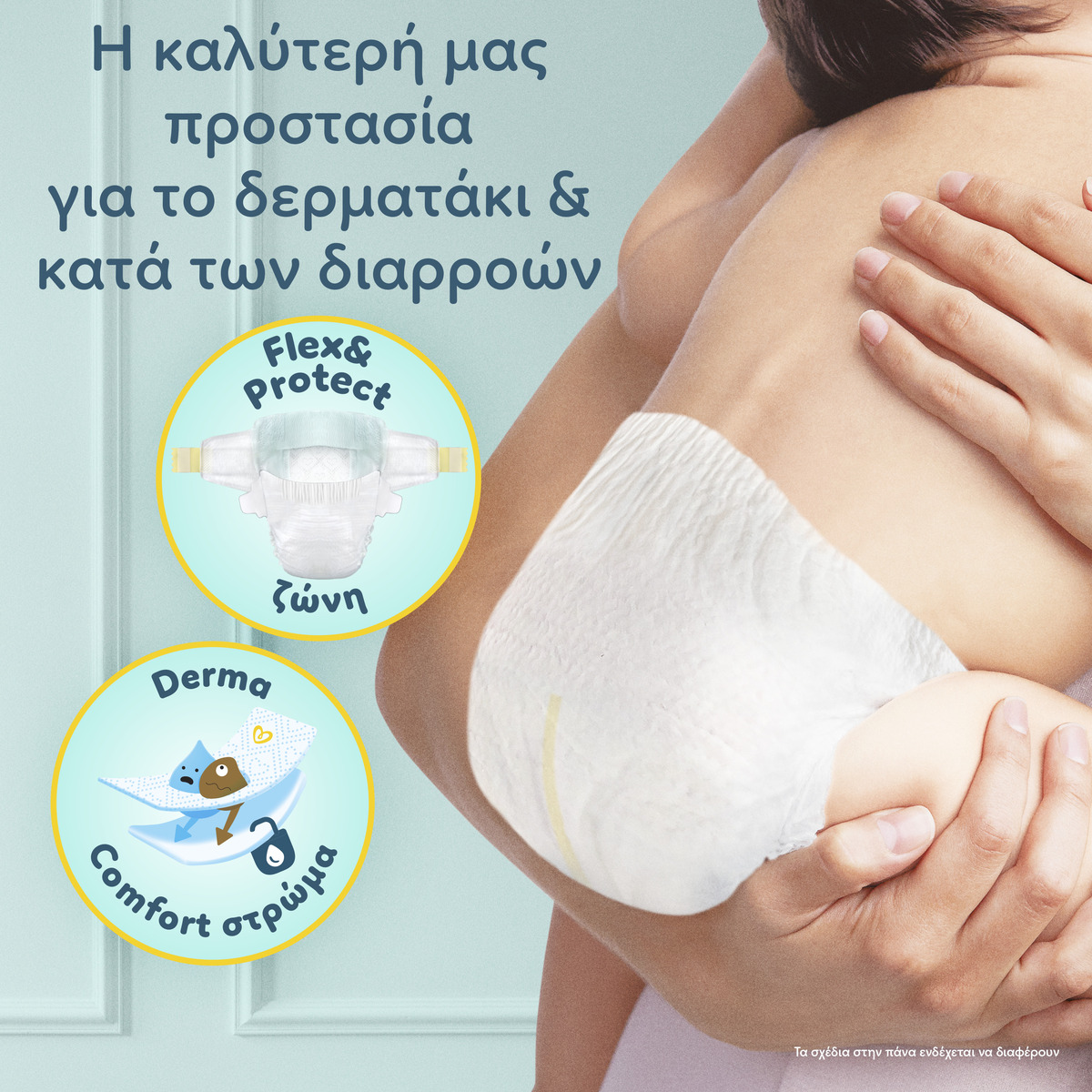 Πάνες ειδικά σχεδιασμένες για την επιδερμίδα του μωρού σας, με μεταξένια απαλότητα και 3 κανάλια, που απορροφούν την υγρασία γρήγορα, αφήνοντας την επιδερμίδα στεγνή. Η πάνα διαθέτει δείκτη υγρασίας που αλλάζει χρώμα και σας λέει πότε χρειάζεται αλλαγή το μωρό σας. Τα Pampers συνιστώνται από την Ελληνική Εταιρεία Παιδιατρικής Δερματολογία